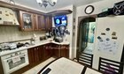 Кухня просторная — 9 м², с удобным рабочим местом и качественным кухонным гарнитуром из массива дерева. Есть гардеробная и большой застеклённый балкон, где можно организовать дополнительное место для хранения или отдыха.